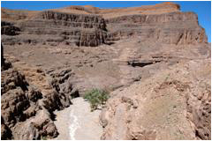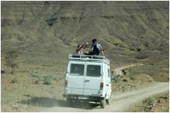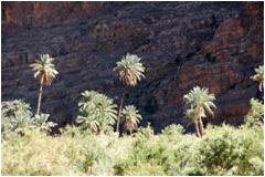 Comme une partie de la piste est immergée nous devons faire demi-tour. Deux courageux s'attaquent à la montée pendant que le reste de la troupe va tout de même voir ce bel endroit que sont les berges de l'oued dans la palmeraie. Madame pipi fait sa distribution puis l'on remonte (en voiture) rejoindre Doris et Jean-Louis qui commencent quand même à s'impatienter. Il nous reste 32 km à parcourir jusque Tamnougalt. |