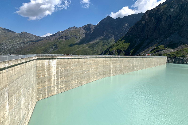 Barrage poids, le plus haut du monde (285 m), barre le cours de la Dixence. Pour plus d'informations : https://www.grande-dixence.ch/